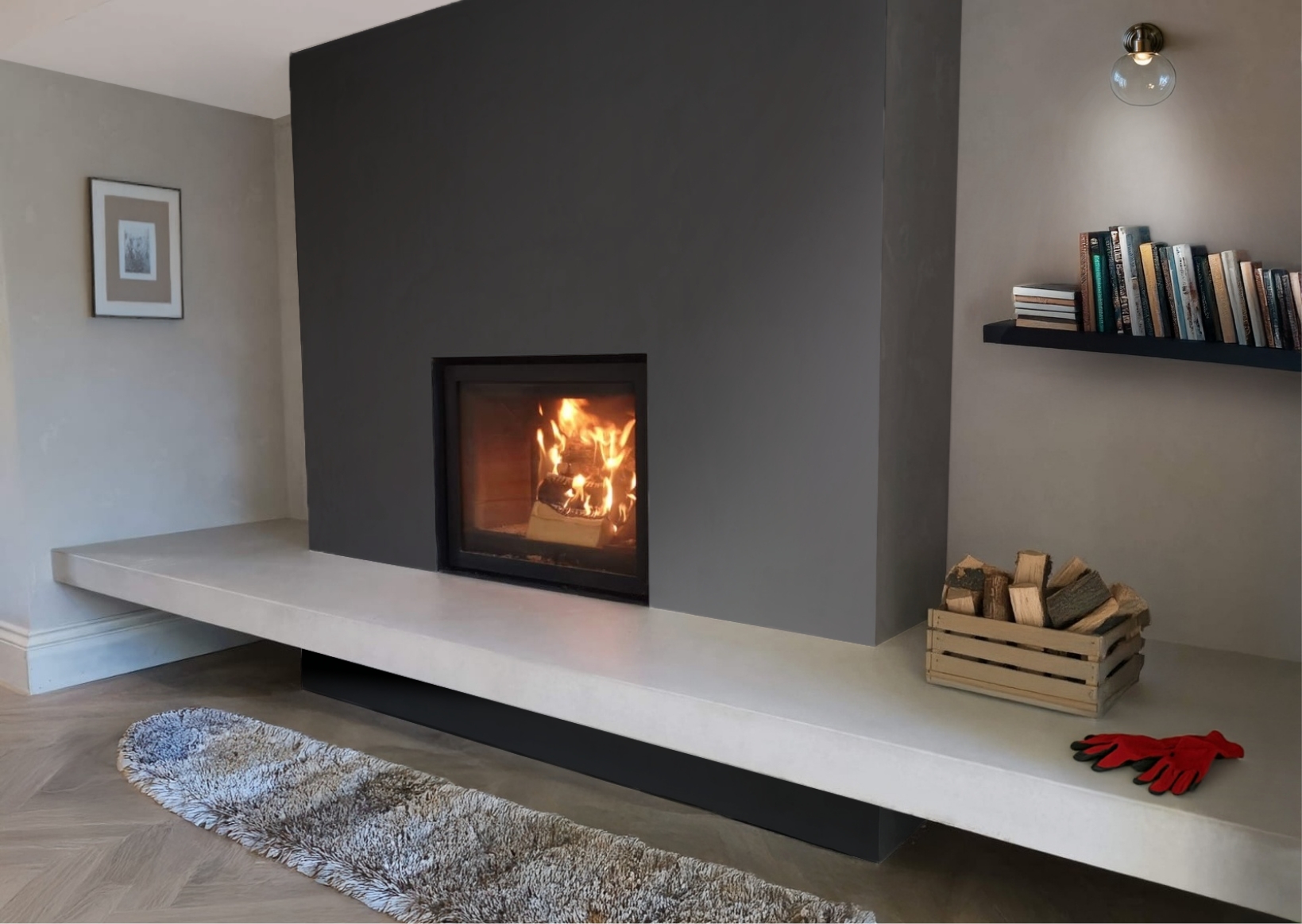 No more off the shelf feature fireplaces. Banish the pine and the plaster, welcome in the warmth of concrete.